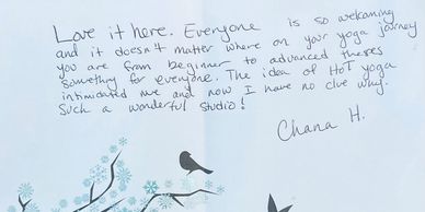 Children handle high temperatures differently than adults in that they absorb heat more than adults do. They also have a smaller blood volume, which makes it harder for them to dissipate the heat, and their slower rate of sweat production effects their ability to cool off. Children under 14 years of age will not be allowed to practice in our studio, but we highly encourage an at home practice to prepare them for studio practice in the future. For safety reasons and to minimize distractions, children will not be allowed to wait in the lobby during class.