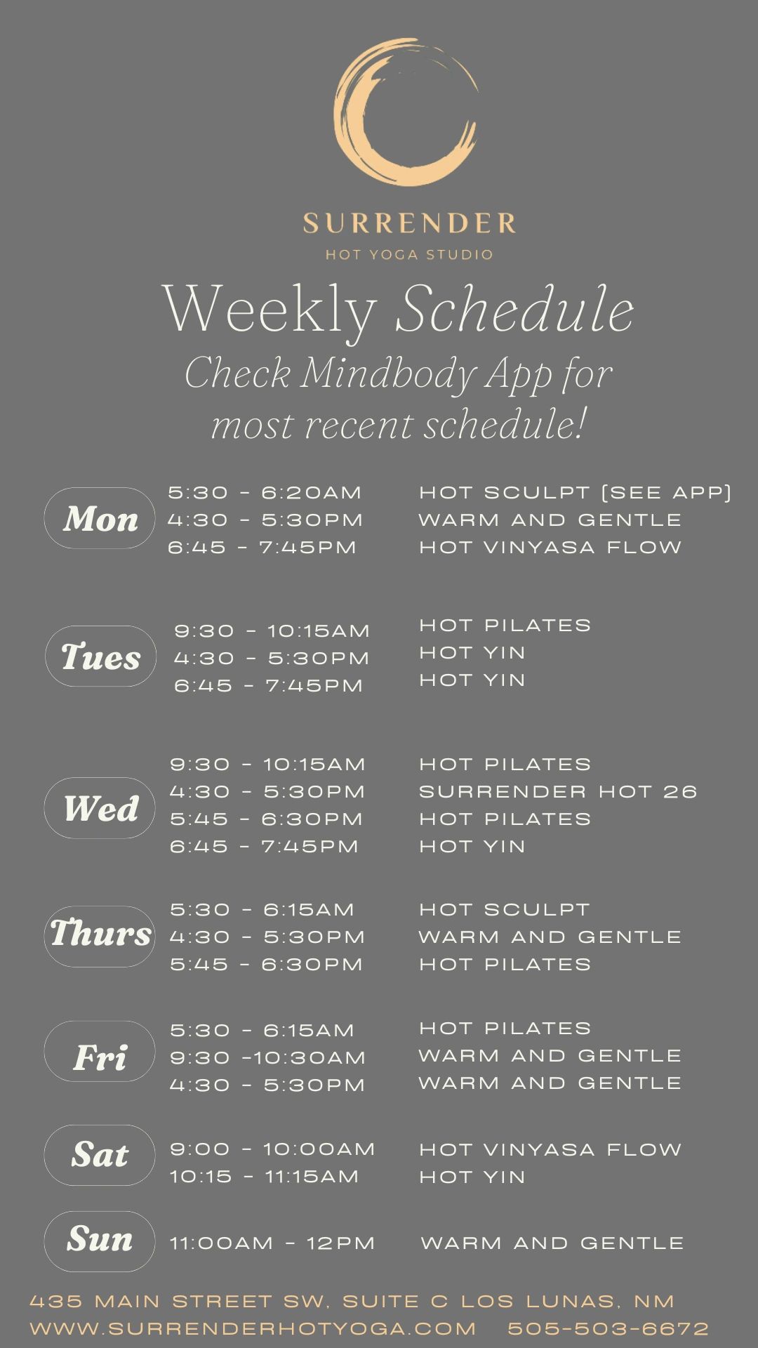 With age and probably not eating that clean I started to gain weight. I figured since I worked out, I could eat whatever I want. Not true! Sure my muscles were toned & I had stamina but I couldn’t lose weight. One day my daughter asked me to join her in a hot yoga class back in 2017. I told her it sounded boring and I hate the heat. I tried it anyway and got hooked. Been doing yoga since 2017 and I was very happy when Surrender Hot Yoga studio opened in Los Lunas. Ever since I’ve been doing yoga I have lost 30 pounds. I feel that it helped with my weight loss, as well as with my patience and back pain.